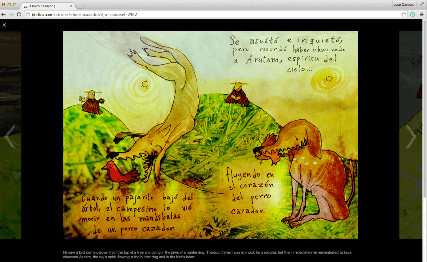 El perro cazador Un cuento sobre la muerte. El perro cazador — A story about death. The hunter dog Tu voto:Comparte / Share this: Haz clic para enviar un enlace por correo electrónico a un amigo (Se abre en una ventana nueva) Correo electrónico Haz clic para compartir en Facebook (Se abre en una ventana nueva) Facebook Haz clic para compartir en X (Se abre en una ventana nueva) X Haz clic para compartir en WhatsApp (Se abre en una ventana nueva) WhatsApp Me gusta Cargando... Relacionado Publicado el octubre 28, 2015junio 19, 2019