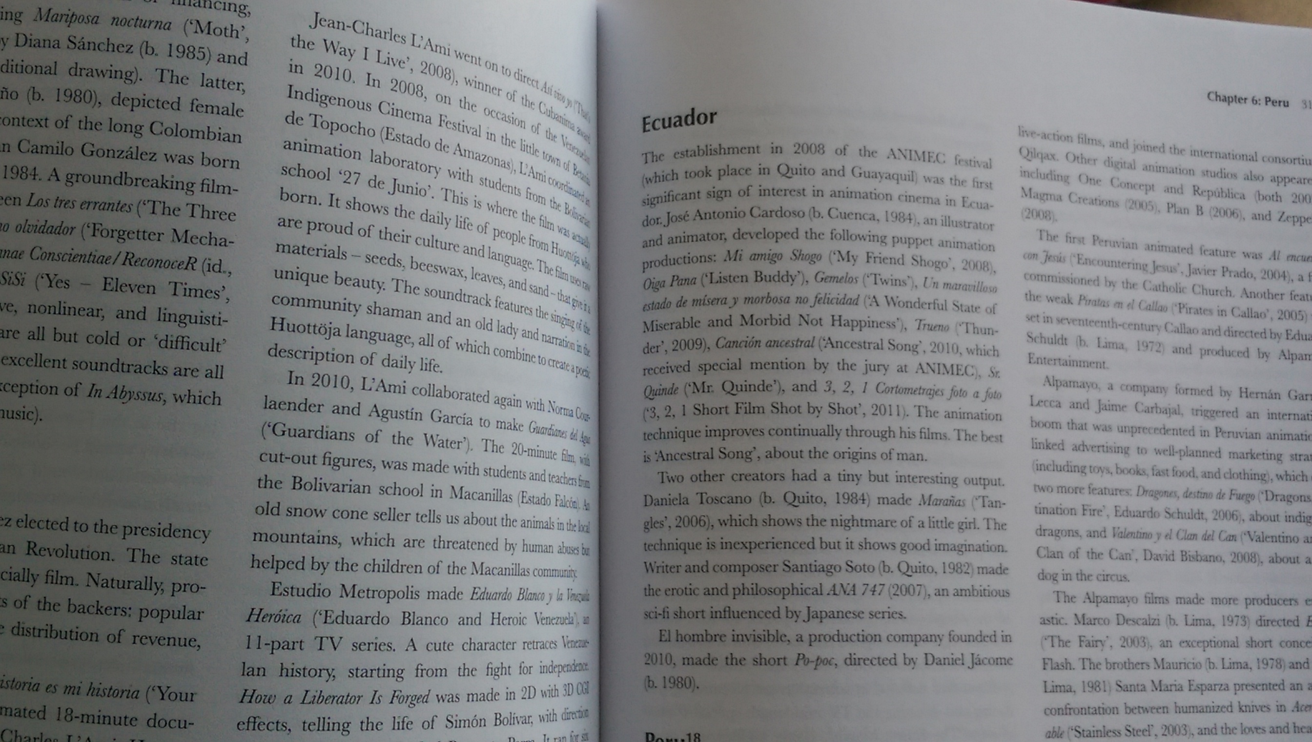 Seguido de esta chévere noticia que recibimos recientemente, nuestro trabajo ha sido mencionado en el libro Animation A World History por Ginnalberto Bendazzi, el principal compendio mundial de animación, en su tercera edición dedicada a animadores contemporáneos. Canto Ancestral y Un maravilloso estado son algunas de las animaciones de Jiráfica que aparecen en este libro.