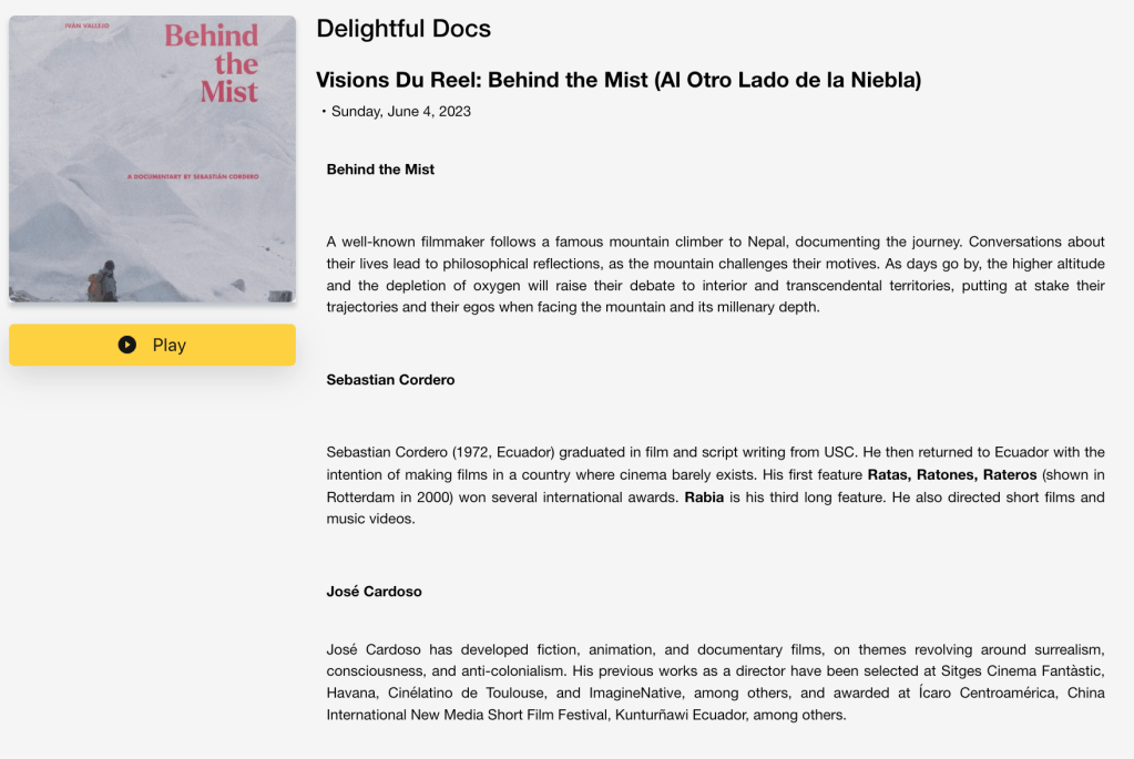 José recently edited, co-wrote and co-produced “Al otro lado de la niebla” (Behind the Mist), a documentary by the experienced director Sebastián Cordero that was widely distributed in Ecuador, and is currently nominated for Best Ibero-American Film at the Ariel, Grande Otelo and Macondo Awards of the Film Academies of Mexico, Brazil and Colombia. And was submitted for consideration for the 2025 Oscars by the Ecuadorian Film Academy.